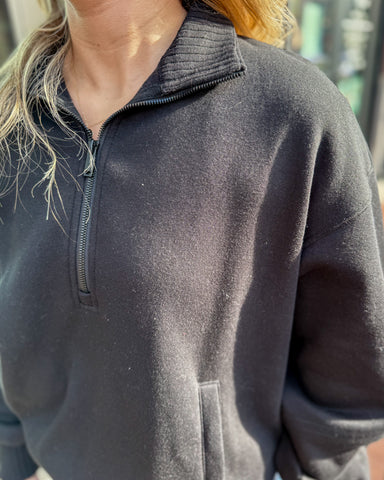 Black French Terry Half-Zip – Casual, Cozy & Always in Style This black half-zip pullover is the definition of easy, everyday comfort. Made fro...