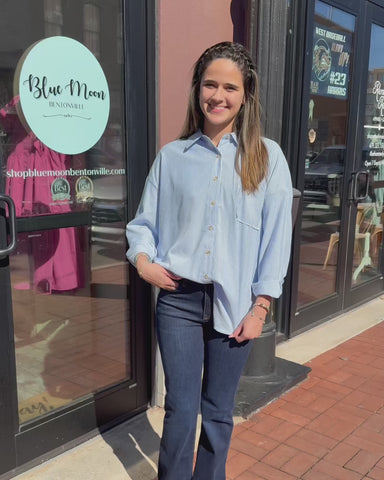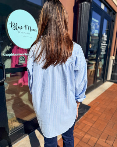Skyline Stripe Button Down – Classic blue striped blouse with timeless polish Crisp, clean, and effortlessly chic, this blue and white striped butt...