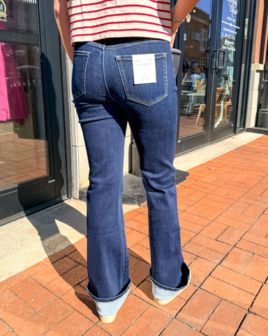 Midnight Stretch Bootcut Jeans – Dark wash high-rise denim with modern flare These dark wash high-rise bootcut jeans are the kind of denim that mak...