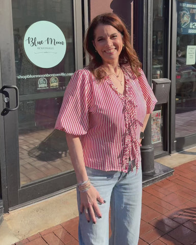 Red & White Striped Tie-Front Top – Classic stripes with a playful, feminine twist This red and white striped top brings instant charm to any o...