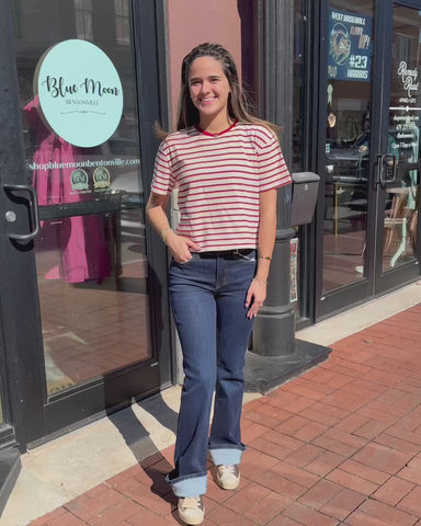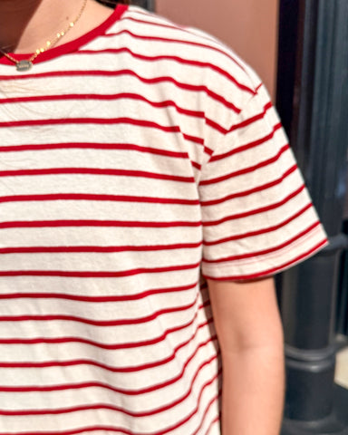 Red Stripe Everyday Tee – Classic striped t-shirt with a playful pop This red and ivory striped tee is the kind of casual top that instantly pulls ...