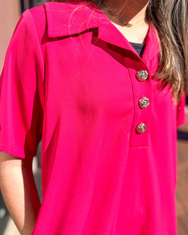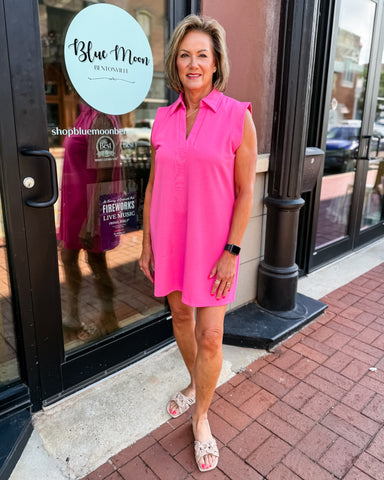 Hot Pink Polo Dress – Bright, Bold, and Effortless Designed for sunny days and stylish comfort, this sleeveless knit dress is the defi...