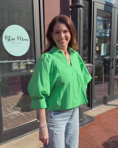 Kelly Green Polished Poplin Top