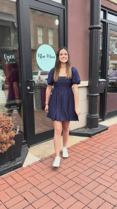 Navy Square Neck Puff Sleeve Dress