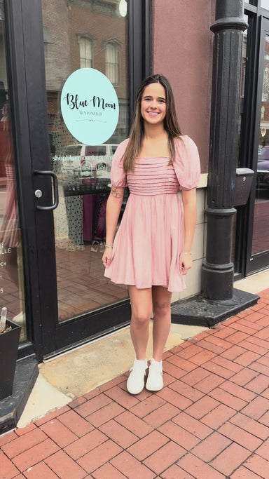 Dusty Peach Square Neck Puff Sleeve Dress