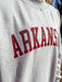 Arkansas Mockneck Sweatshirt – Grey collegiate crew with red plaid lettering