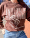 A classic Arkansas graphic sweatshirt with a western twist This chocolate brown crewneck features bold “Arkansas” lettering and a vintage-inspired bronco graphic that gives it that worn-in, all-American feel. It’s the kind of comfy pullover you’ll grab for game days, coffee runs, and cool Arkansas mornings.