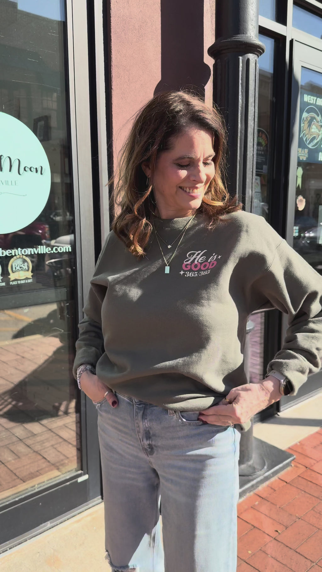 Keep cozy and inspired in the God Is Good Sweatshirt — a faith-filled favorite that reminds you of His goodness every day of the year. With “He is Good 365/365” on the front and “God Is Good All the Time” boldly printed on the back, this sweatshirt spreads positivity wherever you go.