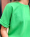 This vibrant green lounge tee brings effortless style to your everyday wardrobe. Designed in the same luxe sand wash rib fabric as the matching pants and shorts, this women’s boutique top is soft, stretchy, and polished enough to wear out and about. The relaxed silhouette and cuffed sleeves give it that modern athleisure vibe you’ll love.