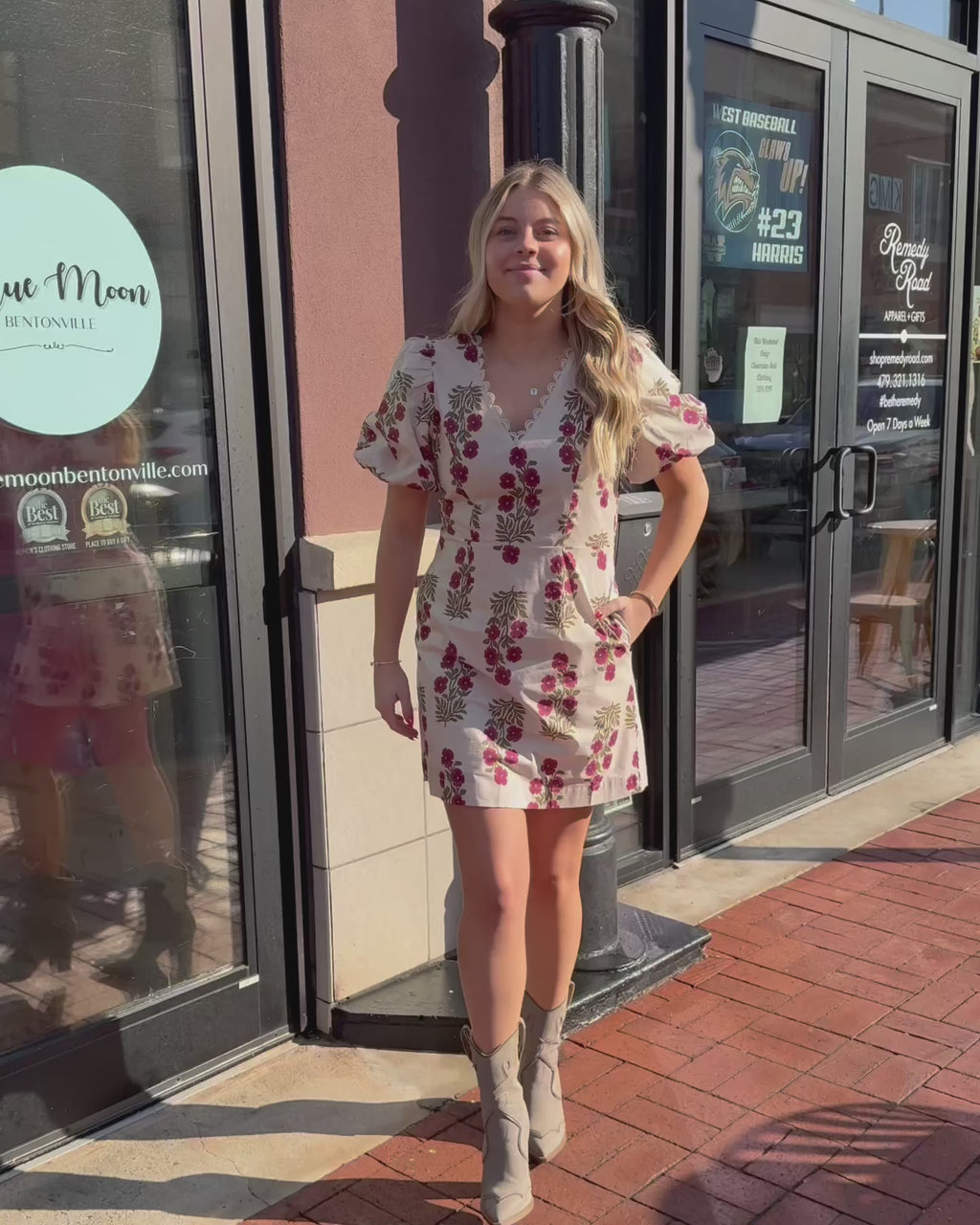 Raspberry Floral Mini Dress - Cotton Puff Sleeve Dress — Shopbluemoonbentonville