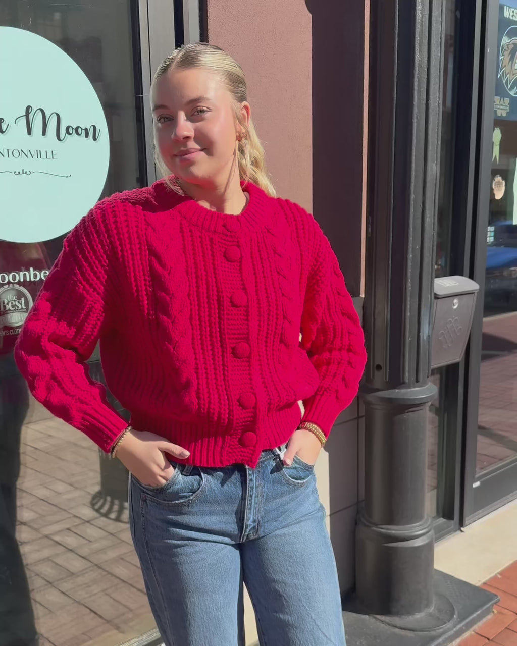 Red Cable Knit Cardigan | Blue Moon Bentonville — Shopbluemoonbentonville