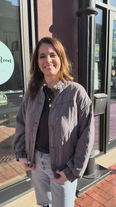 Charcoal Quilted Button Jacket – Effortlessly Cool and Cozy A lightweight layer with major style points — this charcoal quilted jacket adds that la...