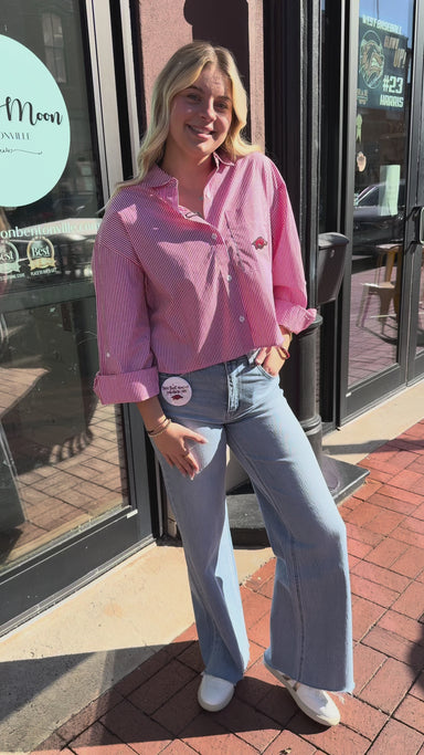 Razorbacks Striped Button Down – Classic Meets Game Day Timeless stripes meet team spirit in this Razorbacks Striped Button Down. With its crisp re...