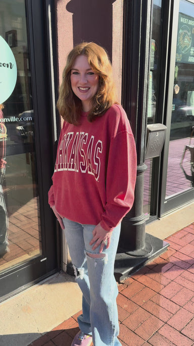 Red Arkansas Collegiate Corded Sweatshirt – Classic Comfort, Timeless Team Spirit Stay cozy while showing your Razorback pride in this Red Arkansas...