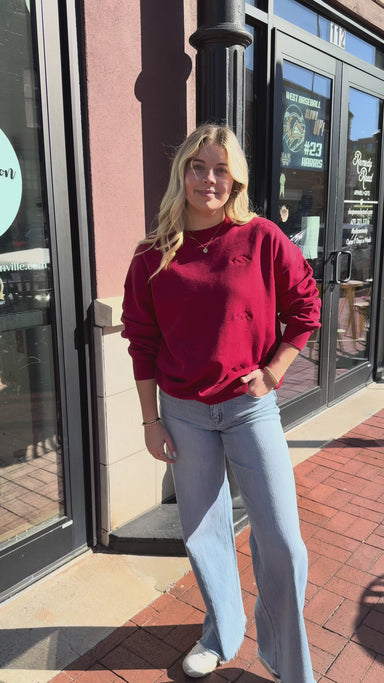 Crimson Razorback Philly Split Sweatshirt – Game Day Ready in Style Show your Razorback pride in this bold, oversized sweatshirt. With its standout...