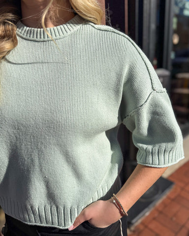 Light Mint Short Sleeve Crewneck Sweater – Fresh color, easy comfort This light mint short sleeve crewneck sweater is the perfect mix of soft color...