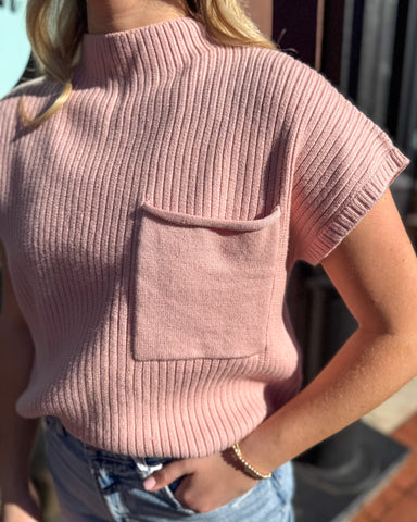 Soft Pink Mock Neck Short Sleeve Sweater – Sweet, polished, and easy This soft pink mock neck short sleeve sweater brings a feminine pop of color w...
