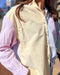 Flattering Silhouette: Relaxed button-down fit with a structured collar and eye-catching colorblock detail.