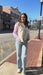This pastel pinstripe button-down is the happy pop of color your closet needs….add it before it’s gone.